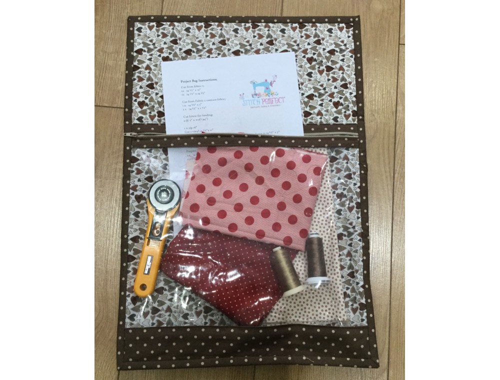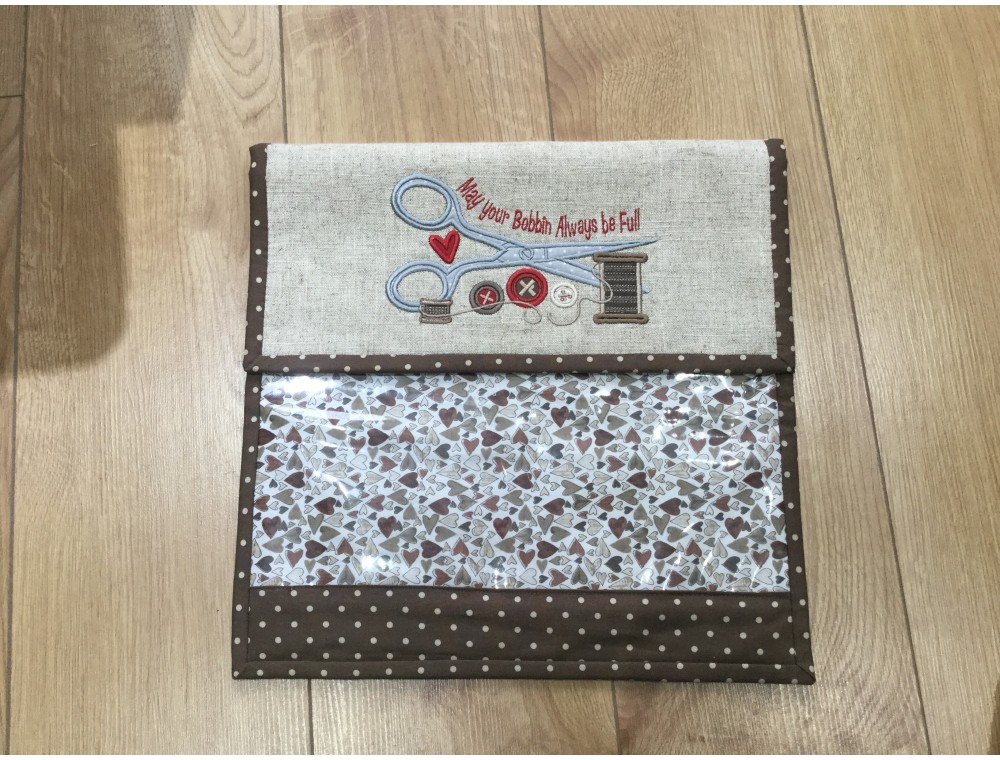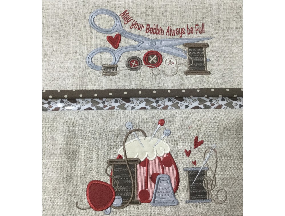 2 sewing themed designs and sewing pattern to make the project bag, great for sewing projects